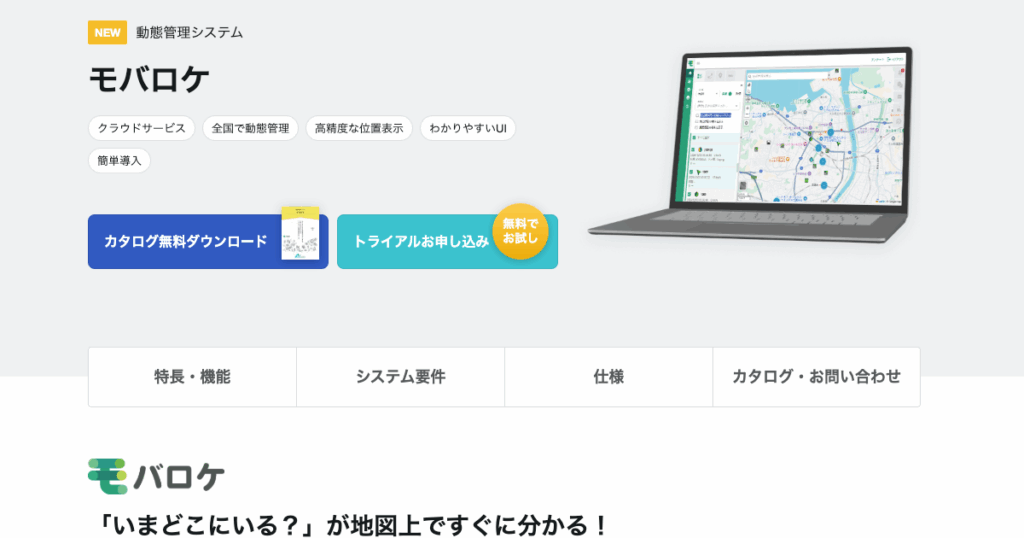 「モバロケ」は、モバイルクリエイト株式会社が提供するクラウド型の動態管理システムです。車両や人の位置情報をリアルタイムで管理・追跡できる業務支援サービスとして、多くの企業に導入されています。