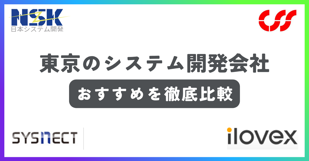 当記事では東京でおすすめのシステム開発会社を紹介します。システム開発会社の選び方や費用相場なども解説しているので、当記事を読めば自社に合ったシステム開発会社を選べるようになります。東京でシステム開発会社への依頼を検討している方はぜひご覧ください。